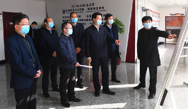 11月18日上午,省委常委、省委政法委书记庄长兴来到我校调研。省委副秘书长杜寿平、省委教育工委书记王建利、省委政法委副书记陈明陪同调研。 校党委书记孙国华、校长杨宗科参加调研活动并汇报一年来学校党建和事业发展情况。在听取学校工作汇报后,庄长兴对学校学习贯彻习近平法治思想和习近平总书记来陕考察重要讲话重要指示精神,推进学校事业高质量发展取得的成绩表示肯定。他强调,要认真学习贯彻党的十九届六中全会精神,深入学习贯彻习近平法治思想和习近平总书记来陕考察重要讲话重要指示精神,落实立德树人根本任务,扎根中国大地办教育,统筹做好学校发展、教育教学、安全稳定等工作,以高质量党建引领学校各项事业高质量发展。 庄长兴先后走访了反恐怖主义法学院(国家安全学院)、刑事法学院、民商法学院和马克思主义学院,了解基层党建、思政工作、人才培养、学科建设等情况。走访中,他走进辅导员办公室、教师流动工作室,同辅导员、青年教师深入交流,察看教师科研成果,询问辅导员工作和学生就业情况。他走进民商法学院本科生第二党支部第四党小组和马克思主义学院学生党支部活动现场,详细了解活动的主题和流程,察看学生党员的发言材料、学习笔记,同支部负责人和学生党员亲切交谈。 庄长兴强调,要深化党史学习教育,坚定不移用党的创新理论铸魂育人,推动党的十九届六中全会精神入脑入心。要把学习贯彻习近平法治思想作为一项长期的重大政治任务,开展好面向全体学生的法治思想学习教育,不断深化学习宣传和阐释解读,形成一批高水平研究成果。要持续加强重点马克思主义学院建设,抓好思政课程和思政队伍建设,立足红色资源优势,让红色文化贯穿育人全过程,提高思政课质量和水平。要以学科建设为龙头,突出学科特色,办好传统优势学科,积极推进新兴学科、交叉学科建设,推动法学教育高质量发展,培养更多德才兼备的高素质法治人才,为建设更高水平法治陕西贡献智慧和力量。 学校领导班子成员,党政办公室、反恐怖主义法学院(国家安全学院)、民商法学院、刑事法学院、马克思主义学院等单位负责人参加调研活动。