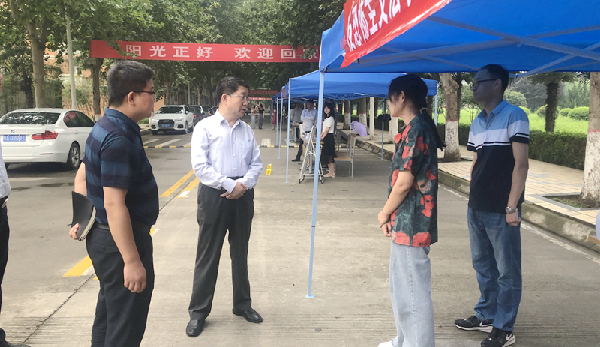 为确保新学期开学平稳有序,8月14日至16日,学校领导集中检查长安校区学生返校和开学准备工作情况。 14日下午、15日上午,校党委书记孙国华、校党委副书记郭武军、副校长张军政、校长助理樊铁虎检查长安校区学生返校工作情况,重点查看了学生返校接待点、学生公寓、超市、食堂、浴室、教室、隔离观察区等场所防疫措施和工作流程。孙国华要求,各单位要高度重视疫情防控,坚决克服麻痹思想,加强沟通协作,落实落细各项防控措施。要坚持底线思维,查不足、补短板,把困难预计充分、措施细化完善,做到未雨绸缪、应对有方。要重点做好人员密集区域防控工作,加强宣传引导,落实错时错峰要求,科学合理安排。要增强服务意识,在符合疫情防控规定前提下,积极满足师生工作、学习、生活需求。要完善、熟悉应急处置机制,严格按照规范处置突发情况,加强对学生的心理疏导和人文关怀,确保学生顺利返校和校园安全稳定。 15日下午,校长杨宗科、校党委副书记郭武军、校长助理樊铁虎检查长安校区学生返校接待点、学生公寓、食堂、超市、图书馆、教学楼、隔离观察区等场所以及校园环境卫生和后勤保障情况。在返校接待点、学生宿舍,杨宗科与学生亲切交谈,详细了解他们上学期居家学习、生活情况,勉励他们尽快调整心态,积极复习准备,争取在开学考试中取得优异成绩。在学生食堂、超市,杨宗科察看了饭菜质量和生活物资准备情况,要求有关部门统筹考虑疫情防控和学生实际需求,进一步丰富菜品和生活物资种类,保障好学生日常学习生活。在教学楼,杨宗科询问了教材选用和发放情况,检查了教学工作准备情况,要求进一步完善新学期教学工作方案,确保线上、线下教学活动有序开展。 16日上午,校党委副书记李平安,校党委副书记、纪委书记肖道远,校党委副书记郭武军,副校长李玉朝、王健、张军政、张荣刚等分别走访各学院,检查学生返校报到、职工到岗、教学安排等各项工作准备情况,听取意见建议,并对新学期工作提出要求。 党政办公室、纪委办公室、宣传部、学工部、教务处、研究生院、人事处、国际教育学院、保卫处、后勤保障处、财务处、基建处、图书馆、门诊部等部门负责同志陪同检查走访。